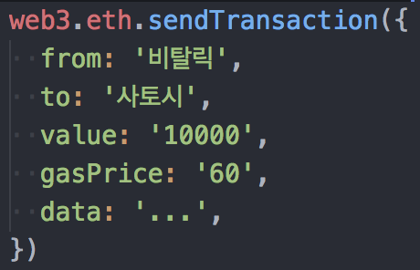 송신자가 비탈릭으로 되어있으니, 아까 말했던 디지털 서명 기술에 적용해보면 "야 비탈릭~! 이 트랜잭션 너가 보낸거 맞아?" 가 되겠네요.