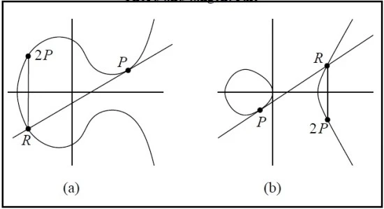 결국 P + P 이기 때문에, P와 P를 잇는 직선(위의 그림 참조)과 나머지 교점(R)의 x축대칭을 시키게 되면 그게 2P입니다. 그렇다면 3P는? 3P는 2P + P 이기 때문에, 우리가 찾은 점 2P와 점 P의 덧셈연산을 진행하면 그 것이 바로 3P입니다.