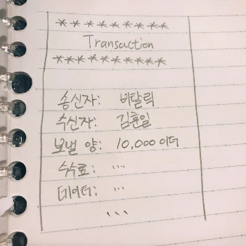 그렇기 때문에 종이쪼가리에 최소한의 싸인(서명)이라도 있어야 되는거고, 이 싸인은 "이 종이 쪼가리(트랜잭션)에 쓰여진 송신자가 진짜 나에요." 라는 의미를 담아야 됩니다.