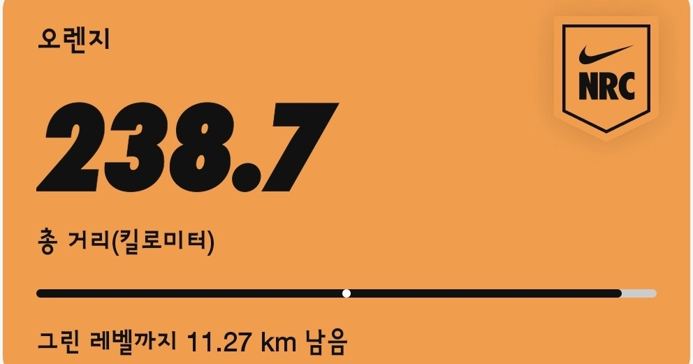 시작한 지는 2년이 훌쩍 넘었으나 혼자서 생각날 때마다 뛸 때 기록 남기는 용에 그친지라 여태 그린 레벨(249.9킬로미터) 안에 머물고 있다.