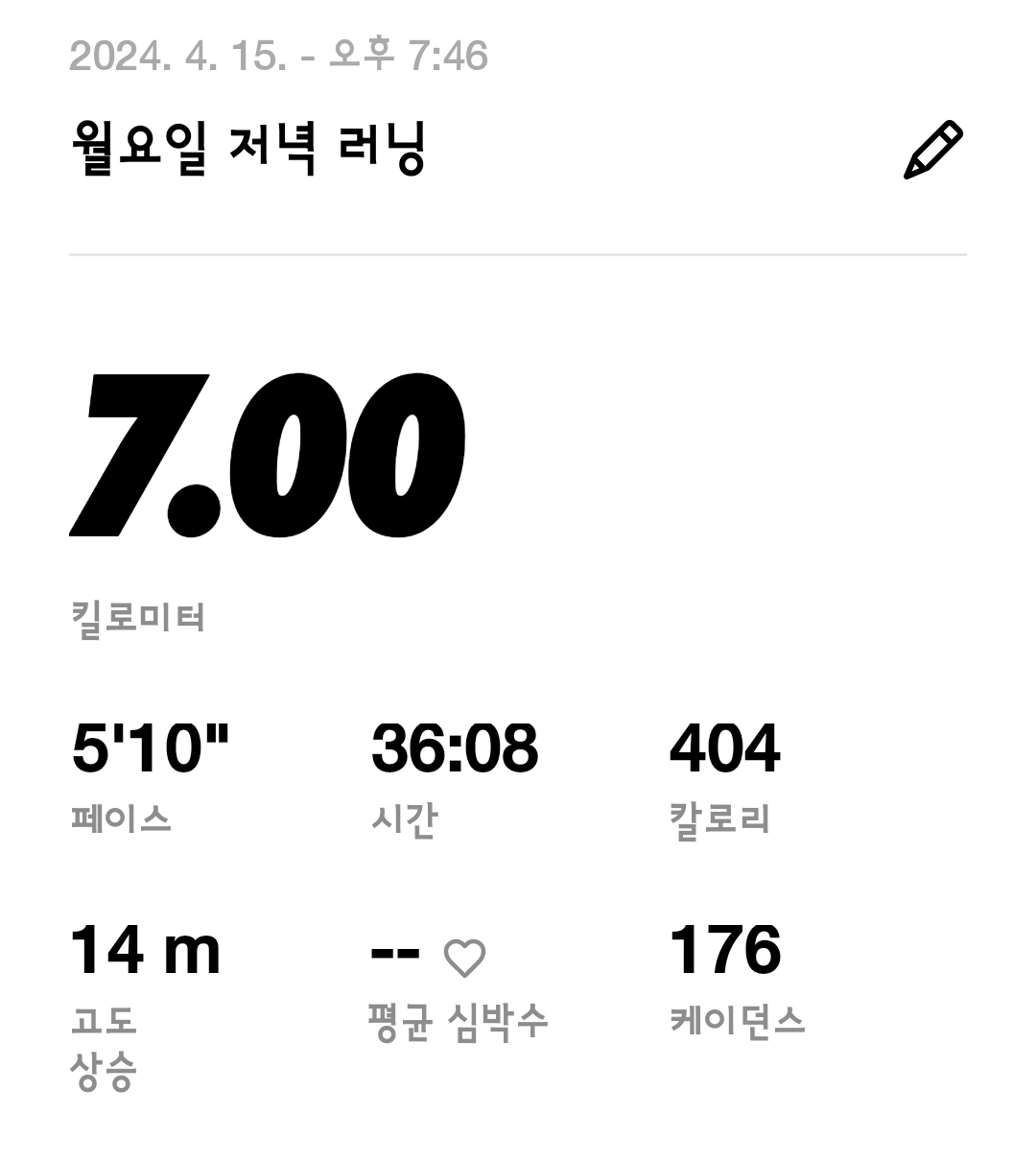그래도 러닝은 ISFP 침대가 친구인 나에겐 정말 좋은 취미인 것 같다. 그린 레벨로의 진입, 그리고 그 이상을 향하여 나아가는 내가 되기를!
