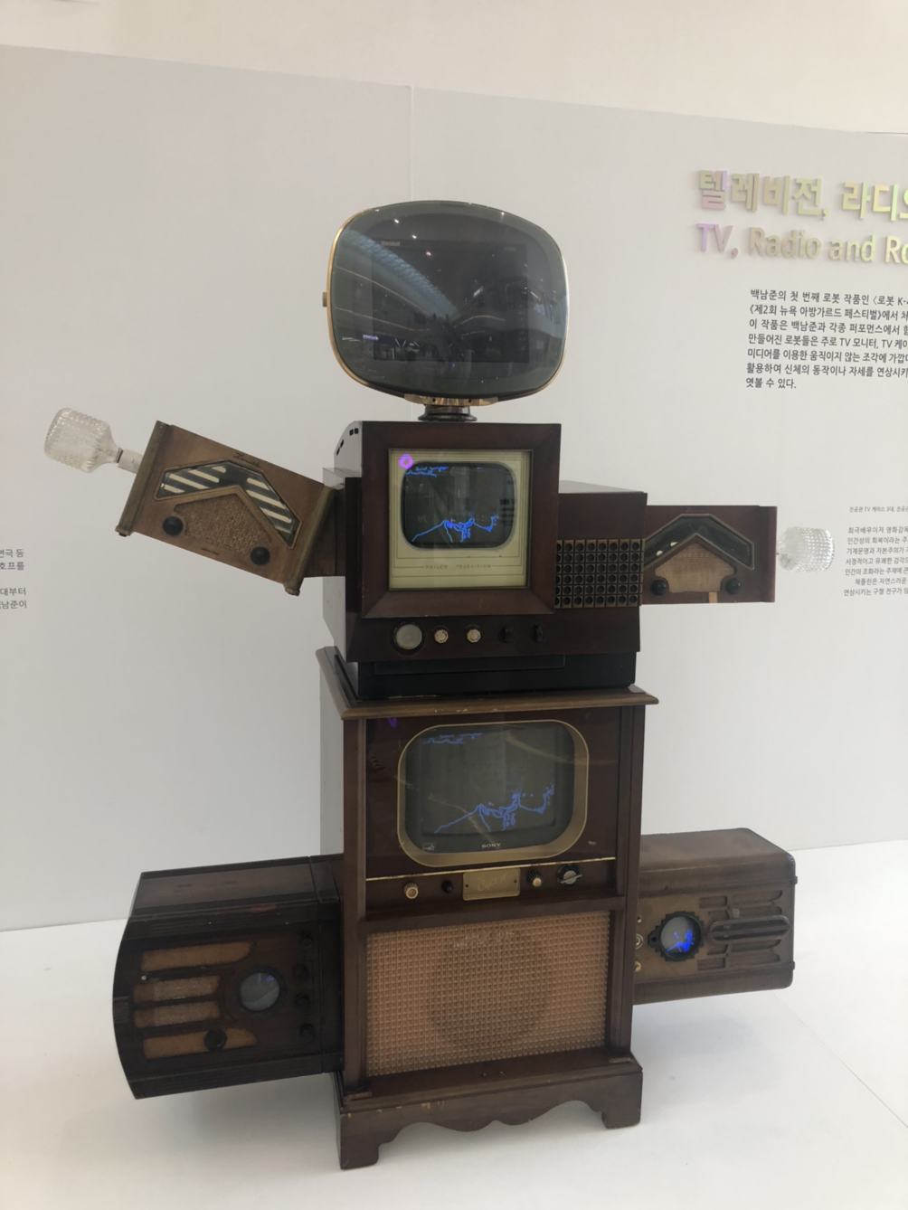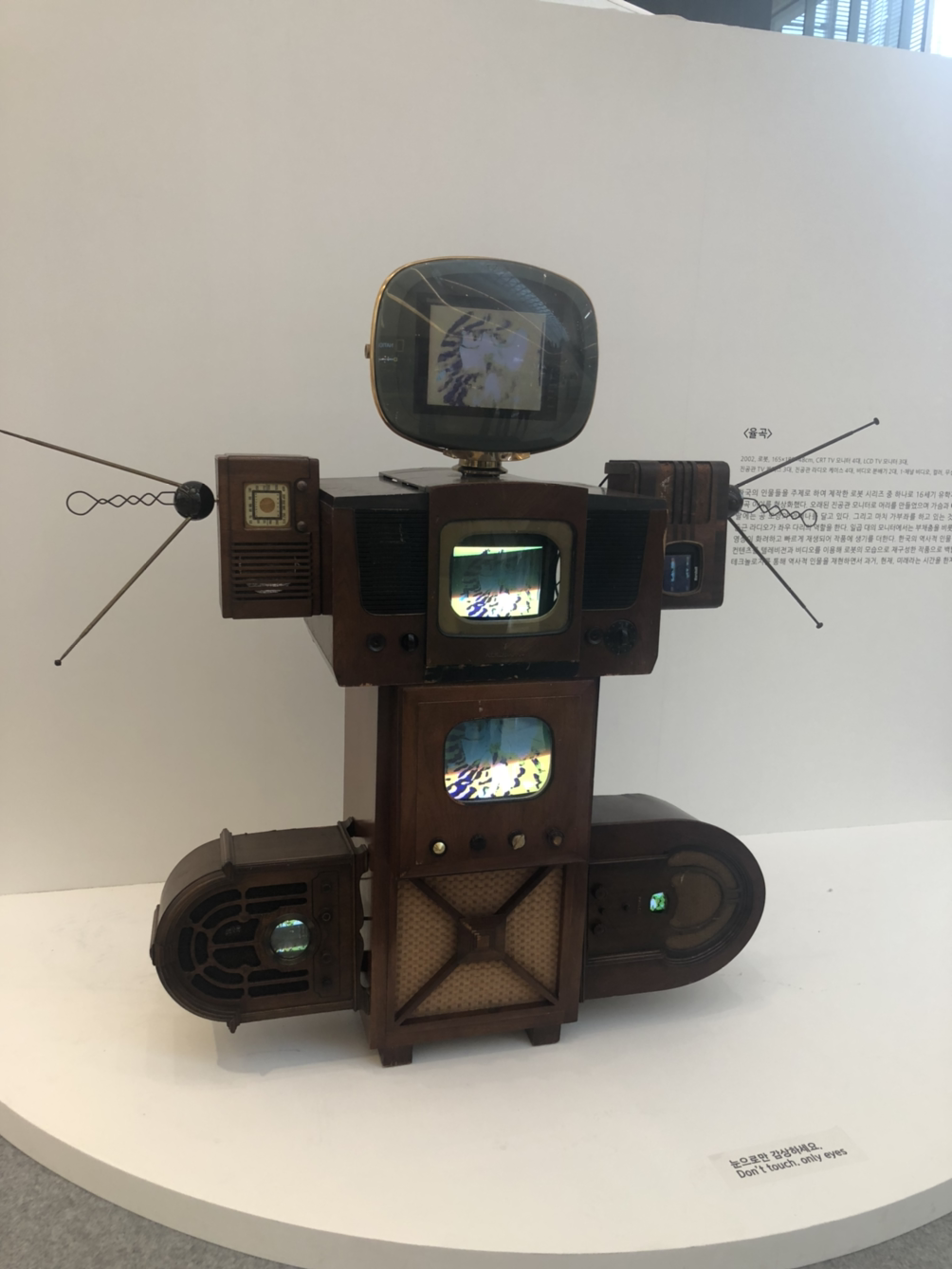 백남준은 ‘비디오 아트’의 선구자로 오늘날과 같은 디지털 시대를 예측하고 이를 예술의 형태로 재구성하였다. ‘미래’를 ‘예술’로 형상화한 것이 백남준의 작업이었다. 특히 그는 인터넷으로 전 지구인이 연결될 것이라 보았고, 실제로 그것을 생중계를 통해 실험했던 사람이기도 하다. 이런 점에서 백남준의 작품을 전시하였을 것으로 본다. 무엇보다 값을 따질 수 없는 작품들을 직접 이곳에 공수해오려 했던 기획에 놀랐다. 일종의 전자제품이어서 충격에 민감할 수 있기 때문이다.