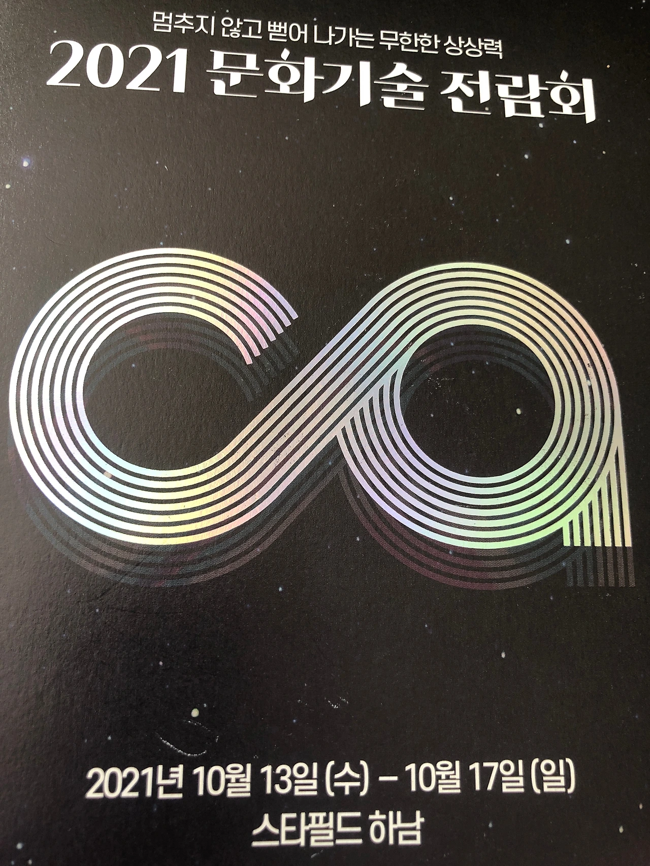 경기도와 경기콘텐츠진흥원에서 여는 문화기술전람회를 다녀왔다. BTS, <미나리>, 그리고 <오징어게임>에 이르기까지 K-콘텐츠가 전 세계적으로 엄청난 주목을 받는 가운데, 문화콘텐츠가 갖는 영향력과 산업으로의 가능성이 그 어느 때보다 주목받고 있다. 문화기술전람회는 4차 산업혁명을 이끌어갈 IT 신기술로 제작한 다양한 콘텐츠를 직접 체험할 수 있다는 점에서 재미있는 경험을 선사한다. 이번 주 일요일까지니 관람을 원한다면 서둘러야 할 것이다.
