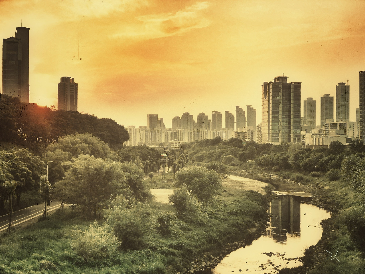 도시의 건물들마저 편안하게 만드는 저녁 노을의 불그스럼한 색을 사진 전체에 덧입혀봤다. 조금은 동화적 느낌이기도 하고, 어찌 보면 아침을 깨우는 동트는 새벽의 빛깔을 보는 느낌이기도 하다. 활기가 도니까. 살다 보면 그렇다. 기억하는 순간들은 생각보다 적다. 그리고 삶이 의미있다고 여기는 순간들도 드물다. 아마도 기억도 의미도 가능한 삶의 한 순간이 이럴 때가 아닐지.
