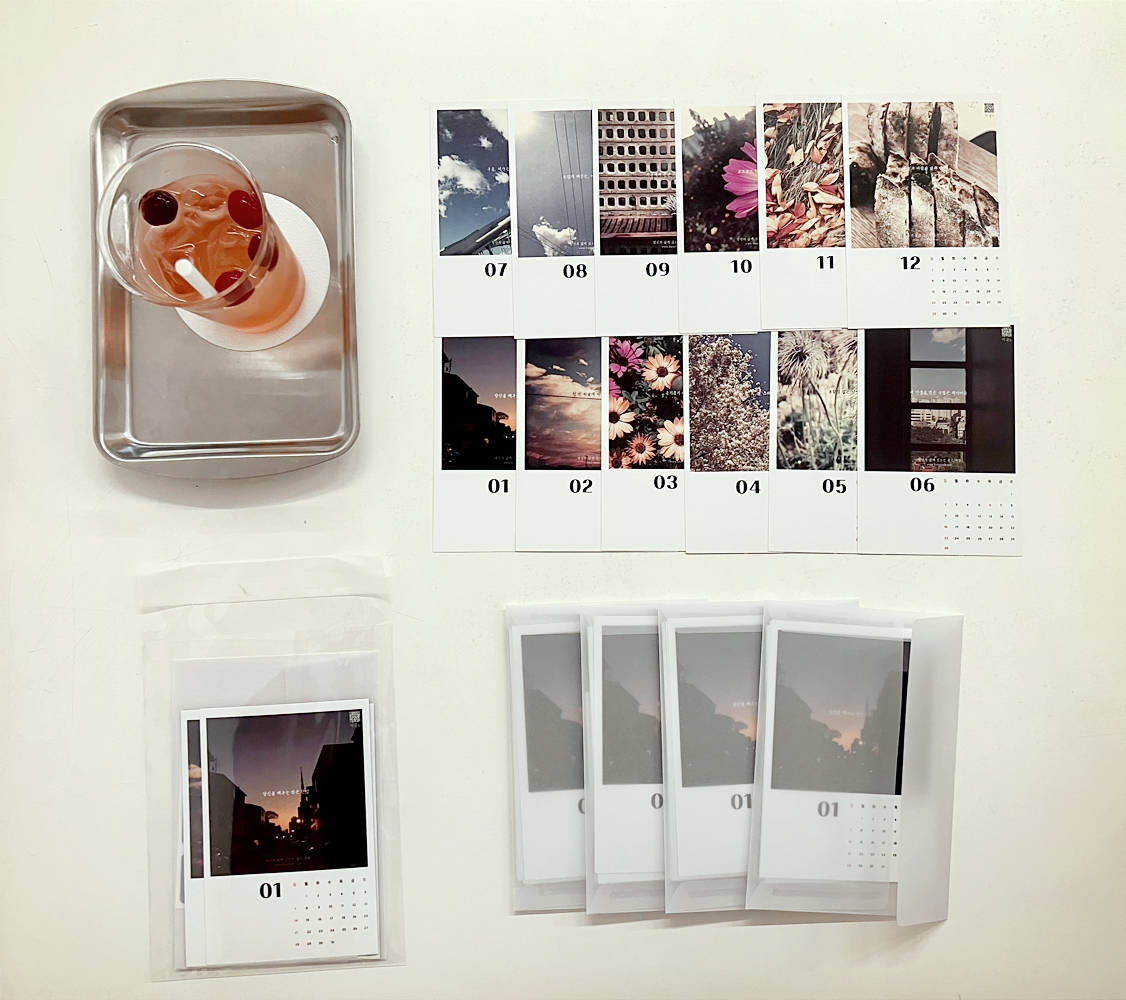 다행히, 카페 사장님께서(아니면 매니저 분이실까) 음료 한 잔을 무료로 내주셨다. 달력 들고 직접 찾아왔다는 이유. 고마운 일이다. 그렇게 시킨 음료와 내가 들고온 달력을 함께 찍었다. 기념 촬영. 잘 팔리고 안 팔리고, 이렇고 저렇고, 여하튼 새로운 도전 앞에 서 있다. 달력 ‘판매’라는.
