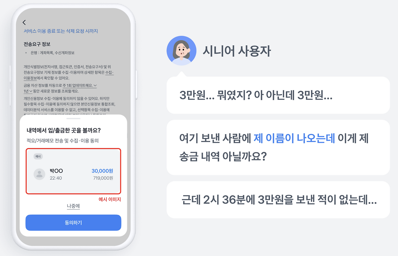 시니어 사용자는 예시 이미지를 자신의 정보로 잘못 해석하게 되는 상황이 여러 UT에서 발견되었다고 합니다.