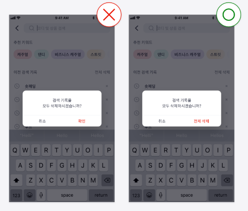 삭제처럼 되돌릴 수 없는 행동의 경우, 팝업을 띄워 한 번 더 확인시켜 주기