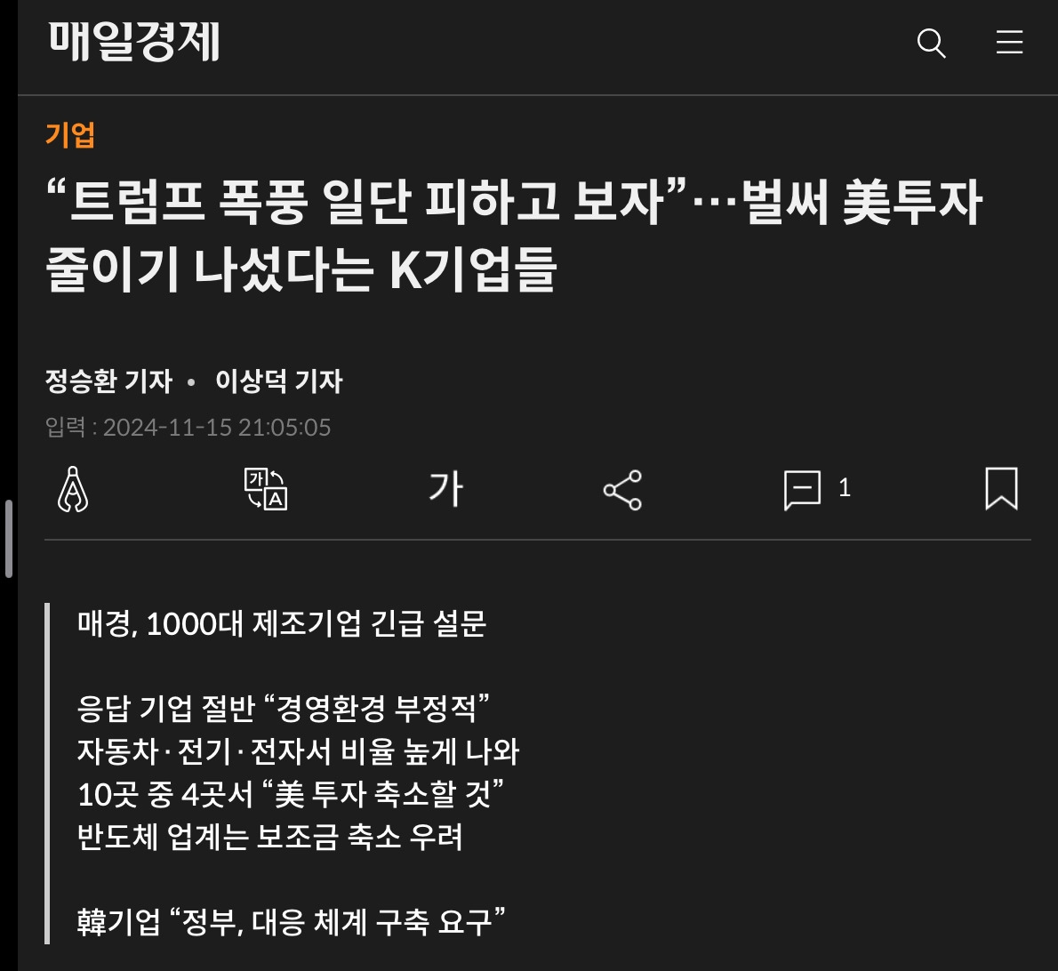 한국 기업들은 미국 투자에 대한 고민이 많아졌을 것이다.