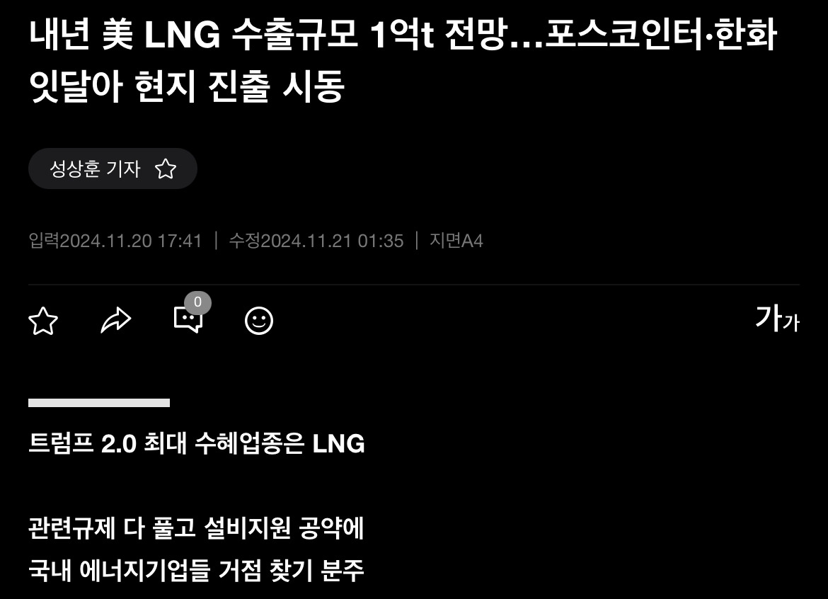 트럼프가 취임하는 즉시 17개 LNG 터미널에 대해 승인할 것 같고, 2029년~2030년에 완공이 될 것이다.