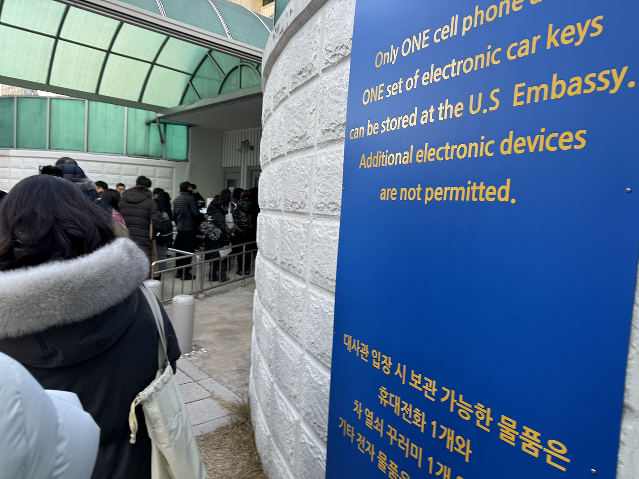 까칠스러운 출입관리자를 지나 대사관에 들어갔고, 핸드폰은 맡겨둔 후 비자 심사를 받는 2층으로 갔다.