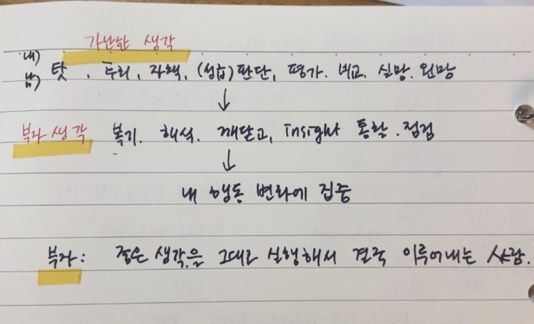 6. 메모한 것을 자주 보면서 또는 다른 일을 할 때 문득 문득 떠올려보면서 내 삶에 어떻게 적용할 것인지