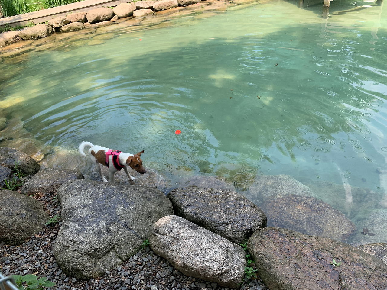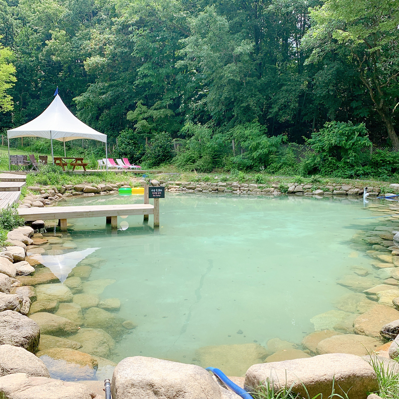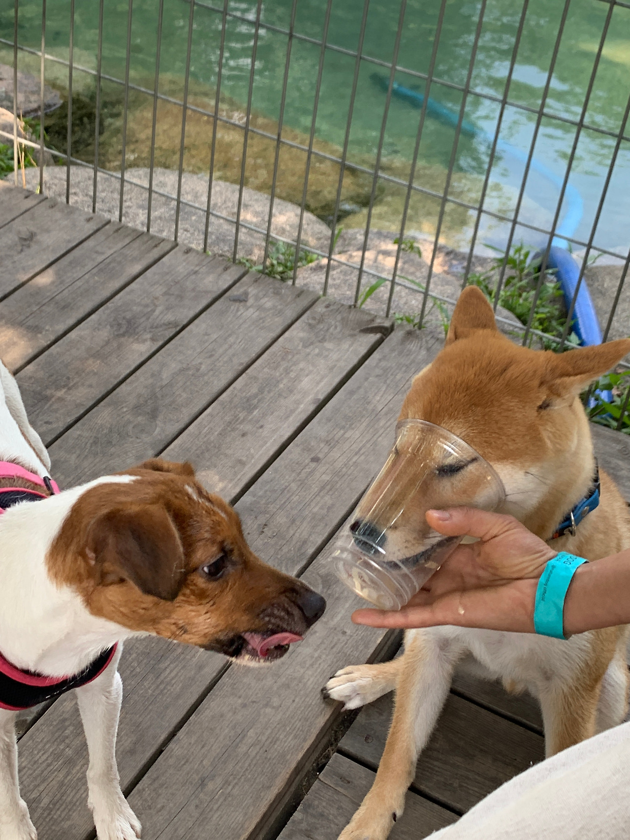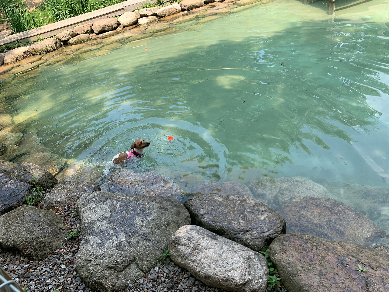 수영장은 연못처럼 예쁘게 해놓았어요. 물 색깔은 아래 깔려 있는 시멘트 때문에 나오는 색 같았구요. 전반적으로 관리를 잘 하고 있는 애견운동장이었어요. 힘찬이는 이 날 수영을 할 계획이 없었는데(왜냐면 수영을 못해요ㅠㅠㅠㅠㅠ), 친구 강아지들이랑 놀다가 얼떨결에 빠져서(?) 수영을 하게 되었어요^_T