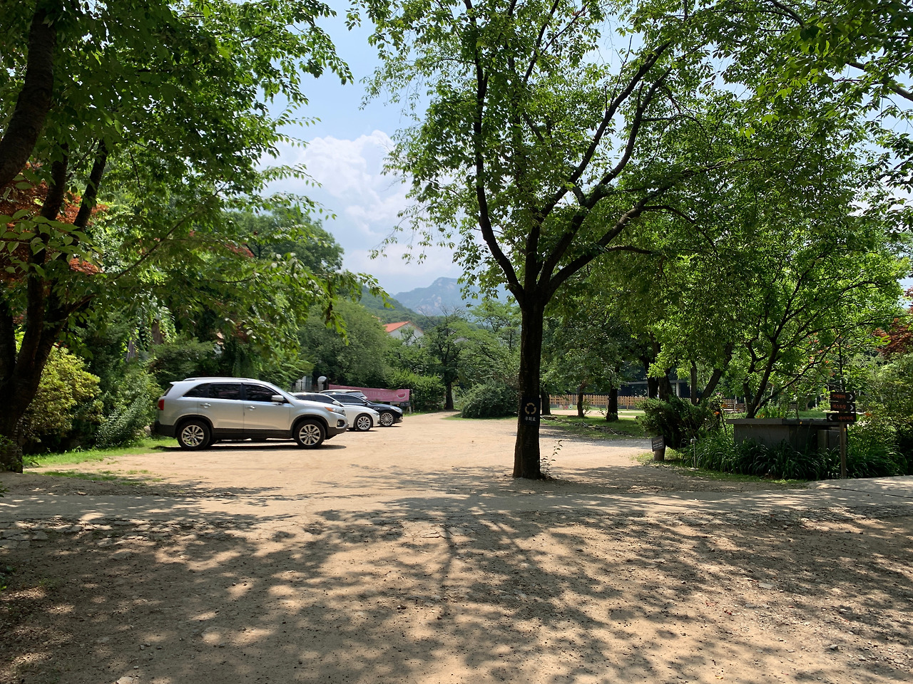 서울 송파구 문정동 기준으로 약 30~40분 소요되는 네이처독은 안내 표지판 따라 가면 아래와 같은 넓은 주차 공간이 나와요. 빈 공간에 주차하시고 반려견 목줄 한 채 계속 입구 쪽으로 따라가시면 매표소가 나옵니다.