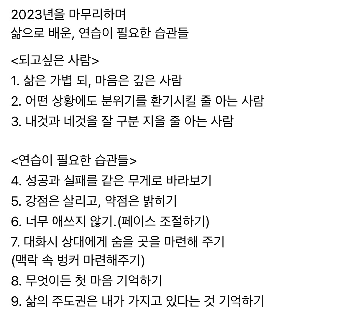무언가 선택하는 건 갖는게아니라 다른 하나를 포기하는 것이라고 했던가. 올해 나는 버릴 수 있는 게 나를 포기하는 것 말고는 없었다. 욕심 많은 내가 무리한 스케줄로 일 년을 보내다 보니, 일상의 즐거움이 희미해졌다. 바쁘다는 핑계로 운동도 못했고, 거울에 비친 내 눈을 도저히 못 마주치겠어서 피해 다니기도 했다. 내년엔 나랑 좀 사이좋게 지내야지