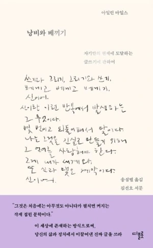글쓰기, 쓰기 행위 그 자체의 충만감과 행복감이 느껴진다. 글쓰기는 그녀의 생활이며 삶이다. 비단 아일린 마일스가 유명한 작가여서, 시인이여서, 소설가여서 이렇게 할 수 있는 것은 아닐 것이다. 똑같은 일상을 살아내는 그 하루 동안 우리는 얼마나 많은 생각에 잠기는가. 그렇게 흘려보냈던 생각들을 포착해서 나만의 냅킨과 담뱃갑에 남겨둔다면. 그것들을 쓰고 그리며 베끼면서 신에게 좀 더 다가설 수 있을까.