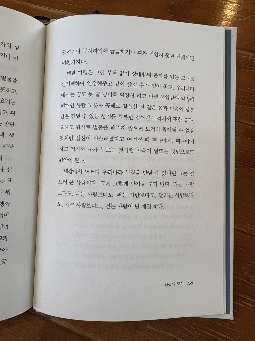 네팔에서도 살아 있는 여신이라는 '쿠마리'를 만나 일정 부분 참담한 기분을 느끼게 되지만, 그것 역시 그들의 종교이니 존중해야만 하는 일일 것이다. 나는 박완서 작가의 여러 여행기를 읽으면서도 맨 마지막 장에 실린 카트만두에 가장 가보고 싶다는 생각을 했다. 까닭은 아마 그녀가 이 도시를 묘사했던 방식 때문일 것이다.