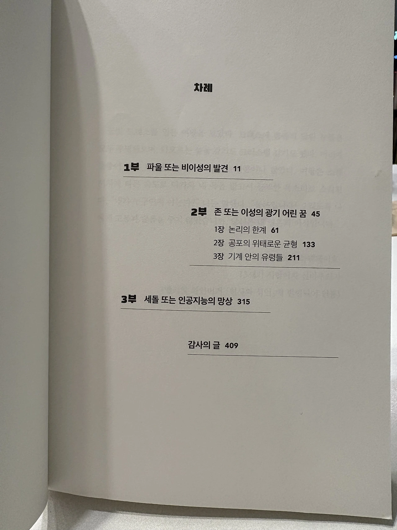 이제 3부의 이세돌이 등장할 차례다. 인류가 생각해낸 것 가운데 가장 복잡하고도 심오한 바둑이라는 게임, 그 게임의 최정상에 서 있던 사람. 그리고 아마 인류 역사상 마지막으로 인공 지능에게 승리한 사람. 세돌을 끝으로 더이상 인간의 승리는 없을 것이다. 그래서 이세돌과 알파고의 대국은 한 시대의 폐막을 의미한다. 인공 지능보다 인간이 뛰어나다는 믿음이 존재하던 세계관은 붕괴됐다. 우리가 가졌던 이성에 대한 믿음, 이성을 향한 집착이 어느새 새로운 시대의 막을 열었다. 막을 수도 없지만 그렇다고 손 놓고 바라만 볼 수도 없는 지금, 우리는 어떻게 대응해야 하는가.
