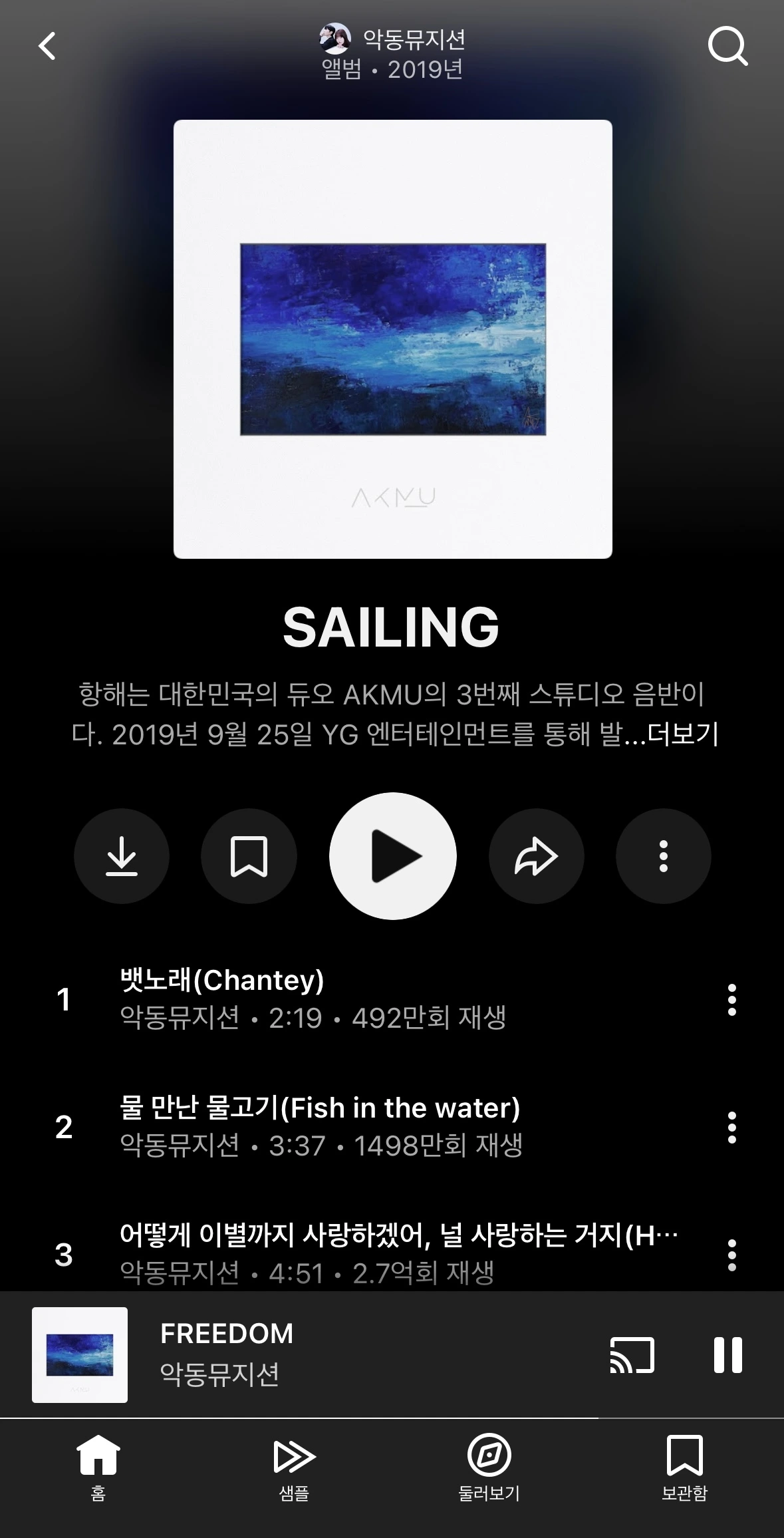 <물 만난 물고기>의 독서는 책을 덮은 순간 끝나지 않는다. 2019년에 발매된 악뮤의 정규 3집 앨범 '항해 SAILING'를 들으면 두 번째 독서 경험이 시작된다. 첫 번째 트랙 '뱃노래', 두 번째 트랙 '물 만난 물고기', 세 번째 트랙 '어떻게 이별까지 사랑하겠어 널 사랑하는 거지', 그리고 다섯 번째 트랙 'FREEDOM', 일곱 번째 트랙 '고래'를 들으며 다시 책의 내용을 떠올리는 것이다. 책을 읽다 인상 깊어 적어두었던 그 구절들이 수현의 목소리로 귓가에 되살아난다. 멜로디가 붙은 문장들은 몇 배 이상의 감동으로 마음에 새겨진다. 음악의 힘은 참 위대해, 절로 읊조리게 되는 말이다.