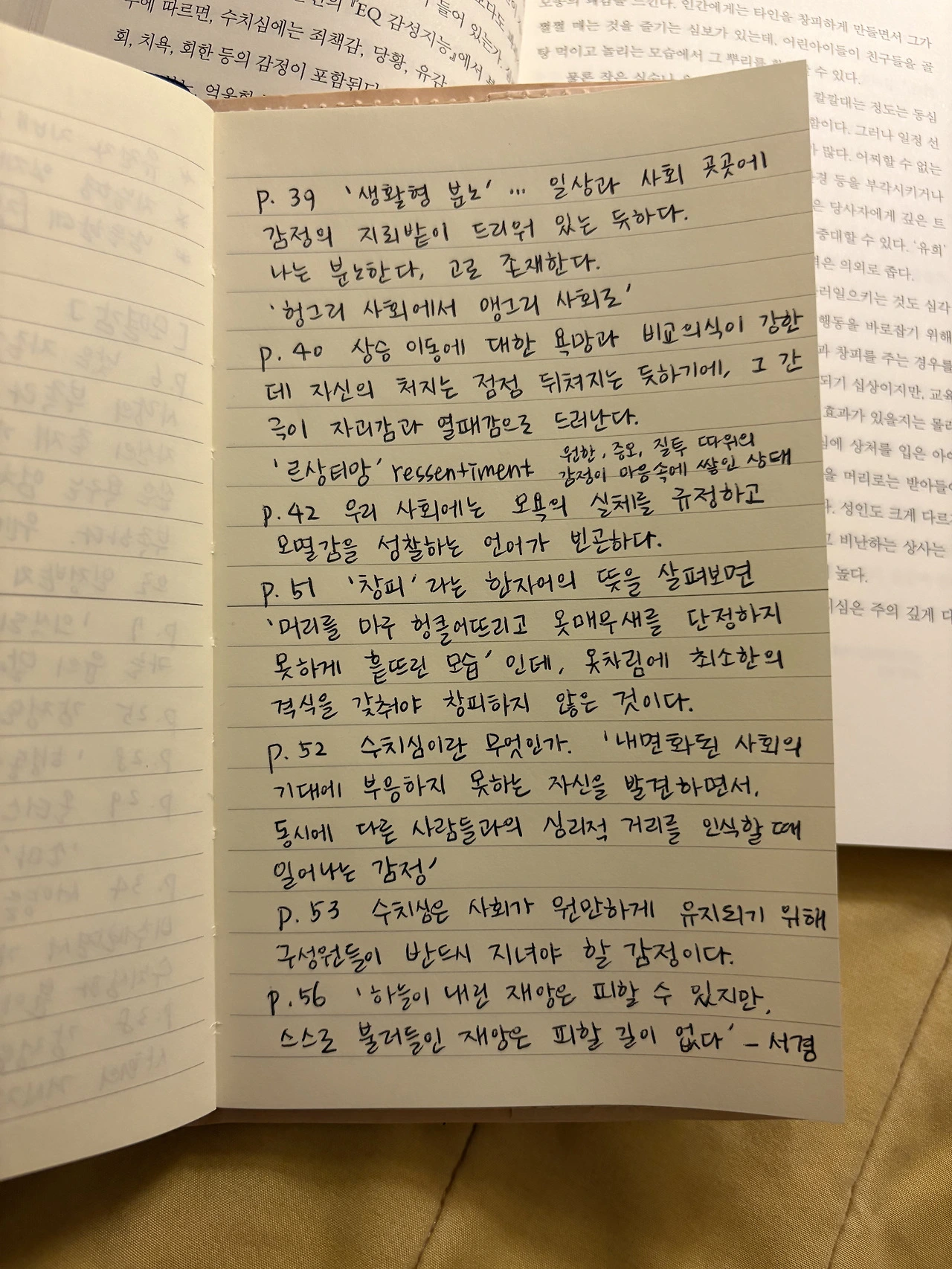 책을 읽으며 특히 흥미로웠던 부분은 '언어에 반영된 한국인의 정서 지형' 장이었다. 한국어에는 부정적인 정서를 가리키는 단어가 압도적으로 많다는 것, 특히 '화'와 '위계 질서'에 대한 표현이 많다는 사실을 처음 깨달았다. 책에 나열되어 있는 그 수많은 단어들에서 조선시대부터 이어져 온 우리 민족의 한과 분, 수치심과 억울함을 쉽게 찾아볼 수 있었다. 그렇다면 우리는 왜 이토록 화나고 서럽고 억울한가. 그리고 왜 그 부정적인 감정들을 타인에게 전가하고 투영하며 안식을 찾는가. 다음을 읽어보자.