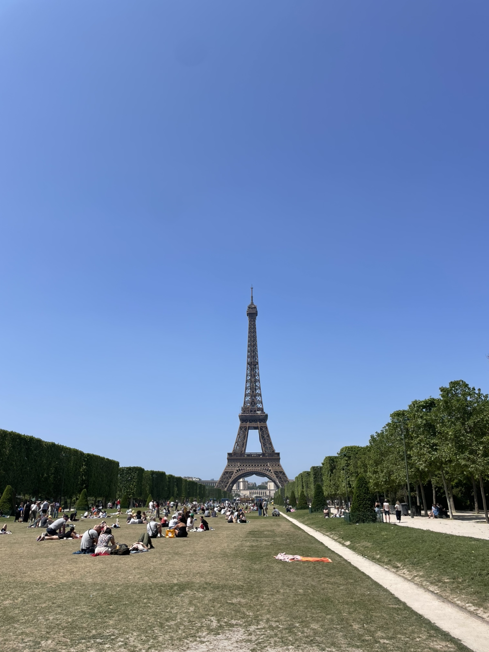 에펠탑 근처를 한참을 걸었다. 파리에 왔음을 온몸으로 느끼고 싶었다. 지금 지내고 있는 15구는 에펠탑에서 꽤나 가까워서, 걷다 보면 에펠탑이 ‘네가 왜 여기서 나와?’ 싶을 정도로 갑작스럽게 나타난다. 항상 7-8월의 사람들이 바글바글한 파리의 모습만 봤었는데 5월의 파리는 한적해서 낯설다. 사람들이 쯔쯔가무시가 두렵지도 않은지 벌러덩 누워서 햇빛을 한껏 만끽하고 있었다. 하지만 아일랜드에서 입은 선번이 아직 쓰라렸고, 쯔쯔가무시도 두려웠기에 잔디밭 옆에 서서 낭만을 즐기는 사람들을 보며 낭만을 느끼고 있었다.