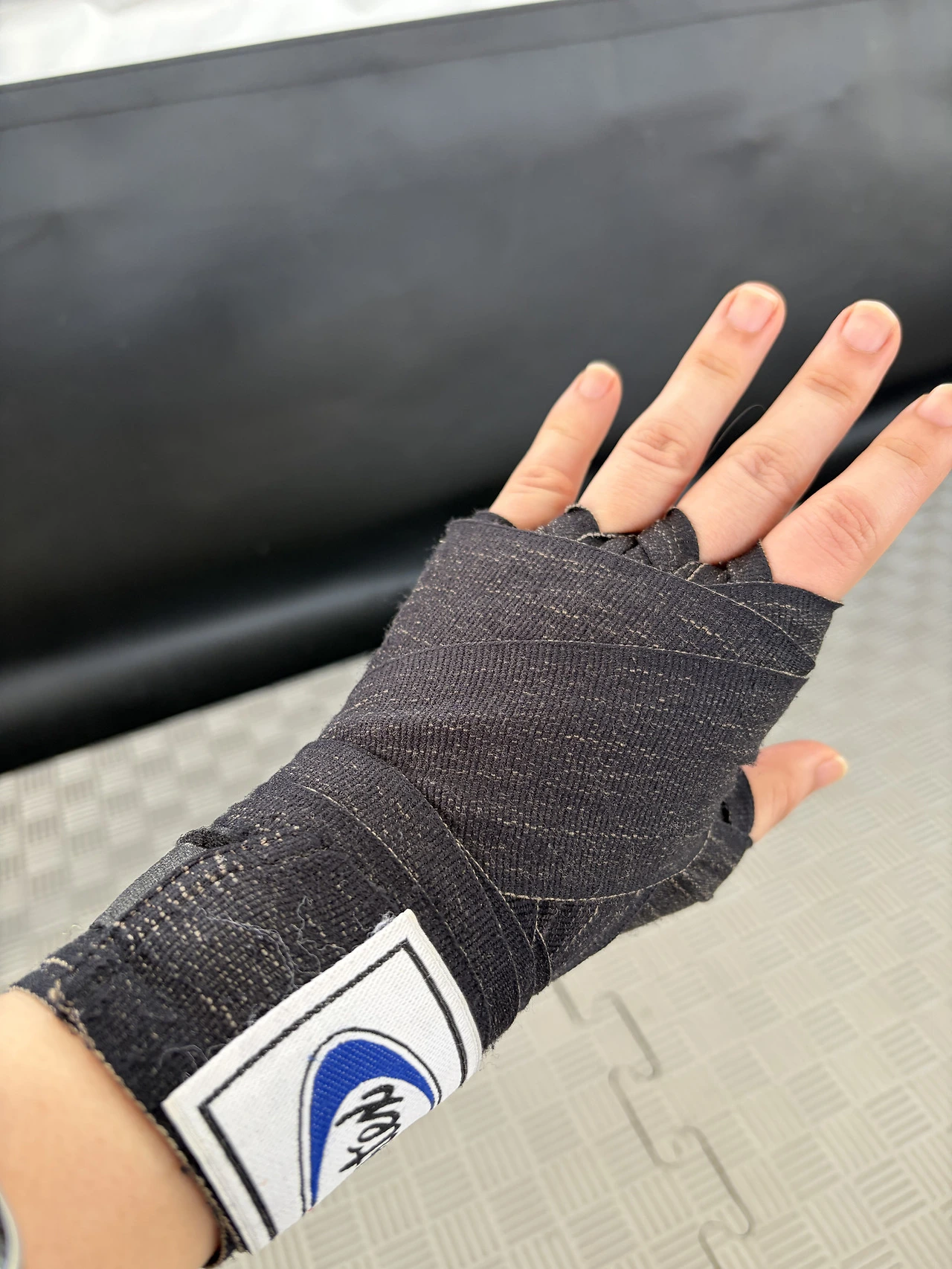 줄넘기 후 플랭크 1분, 푸시업 10개까지가 준비운동이었다. 첫 루틴이 끝났을 때부터 오늘 해야 할 운동은 다한 것 같았다. 선생님들은 수강생들의 손에 테이프 같은 것을 감아주기 시작했다. 내 앞에는 파마머리 청년 선생님이 앉았다. 오른손을 달라고 하더니 감을 때마다 주먹을 쥐어봐라 펴봐라 하며 테이프를 정성껏 감아주었다. 내가 테이핑을 하고도 주먹을 잘 쥘 수 있도록 그는 신경 쓰고 있었다. 마치 깁스를 해주는 의사 선생님같이 믿음직스러웠다. 세심한 고객 서비스에 감동의 바다에 빠지는 것 같았다. 감동 속에서 허우적거리고 있다가 정신을 차려보니 왼손은 이미 테이프가 투박하게 감겨있었다. 주먹이 쥐어지지 않았다. 옆에 계셨던 한국인 여자분이 물었다. “괜찮으세요? 피가 안 통하는 것 같아 보여요.”