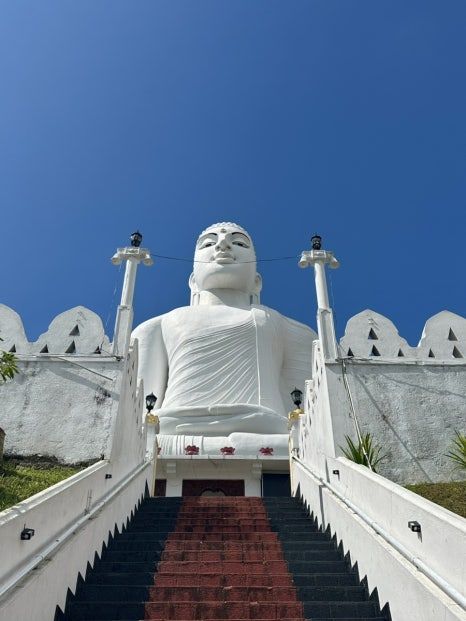 아침에 정해진 목적지 없이 혼자 길을 걷다가 높은 산에 솟아있는 커다란 흰색 불상과 눈이 마주쳤다. 햇빛을 받아 반짝이는 그 눈빛이 마치 내게 오라고 전하는 것 같아 즉흥적으로 방향을 바꿨다. 불상을 만나러 바히라와칸더에 가기로 마음먹었다. 바히라와칸더는 스리 마하 보디 위하라야(Sri Maha Bodhi Viharaya)라는 절이 있는 언덕이다. 캔디 어디를 가도 눈에 띄는 흰색 불상이 바로 그 절에 모셔져 있다. 현지인들은 그 절을 진짜 이름 대신 바히라와칸더라고 부른다.
