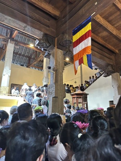 불치사(Sri Dalada Maligawa)는 부처님의 치아 사리를 보관하고 있는 불교식 궁전으로, 스리랑카에서 가장 성스러운 곳으로 손꼽힌다. 내가 스리랑카에서 가장 좋아하는 곳이기도 하다. 불치사에 들어서면 마음이 저절로 평온해진다. 불치사는 하루 3번, 치아 사리함을 공개하는 의례 '떼와와'를 진행한다. 오전 5시 30분, 9시 30분, 오후 6시 30분에 진행하는데, 9시 30분 시간대가 가장 붐빈다. 하필 그 무렵에 방문했더니 입장하려는 사람들로 불치당 안이 인산인해를 이루었다. 나의 의지와 상관없이 사람들 틈에 휩쓸려가는데, 갑자기 그 사이에서 누군가 나를 끄집어냈다.