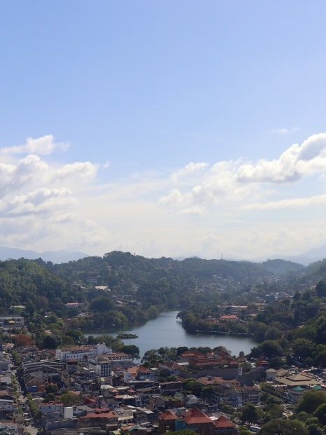 바히라와칸더는 캔디에서 가장 유명한 전망대이기도 하다. 불상 뒤편에는 정상으로 올라갈 수 있는 계단이 있는데, 그 계단을 돌고 돌아 꼭대기에 올라서면 캔디 시내를 한눈에 내려다볼 수 있다. 시야에 가장 먼저 들어오는 건 캔디의 맑은 거울 같은 캔디 호수다. 따뜻한 햇살을 받아 푸르디푸른 물빛을 뽐내며 자신감을 드러내고 있으니 시선을 안 줄 수가 있나. 금방 두 발로 지나쳐 온 길이지만 멀리서 보니 더없이 수려하고 평화로운 광경이었다.