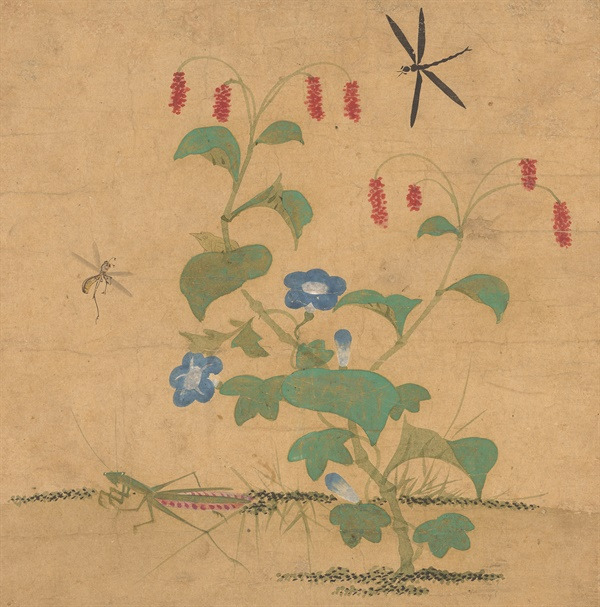 ▲ 초충도8곡병: 산차조기와 사마귀 신사임당, 16세기, 종이에 채색, 34x28.3cm