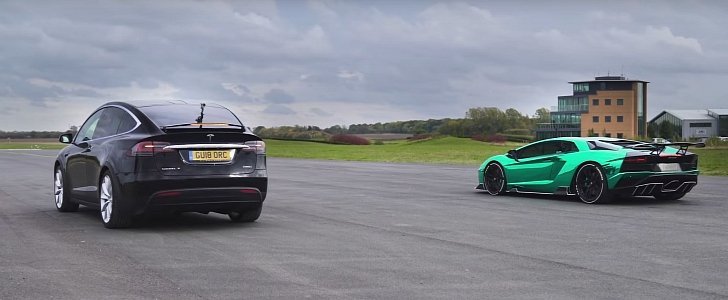 테슬라 모델 X vs. 포르쉐 아벤타도르 Drag race