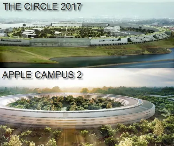 아마 더 서클을 보면서 애플을 떠올리게 된 것은 영화의 배경이 애플 캠퍼스와 닮았기 때문일 수도 있다.혹자는 더 서클이 묘사하는 서비스와의 특징적 유사점으로 페이스북이나 인스타그램을 모티브로 한 것이라고 생각할 수도 있겠다 싶었다. 하지만 씨체인지(지금 독자분의 손에 들려있는 스마트폰의 오마쥬)를 통해 수집된 방대한 개인정보를 이용해 기업의 경영자가 원하는 것을 이루려고 하는 기업 조직 행동의 유사성이, 요즘 세상에서 모르는 사람이 거의 없고 또한 Android 폰 사용자에 대해 모르는 게 없는 회사인 구글을 더 떠올리게 한다.