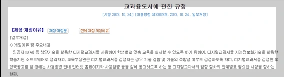 인공지능 등 첨단 기술을 활용한 디지털교과서를 지능정보화기술을 활용한 학습지원 소프트웨어로 정의하고, 디지털교과서를 교과용도서에 명시하였음