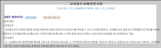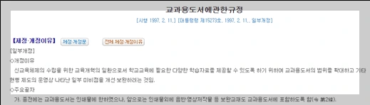 교과용도서에 관한 규정에 주된 교재와 보완교재의 구분을 없애고, 서책, 음반, 영상 및 전자저작물을 교과용도서로 인정하고 있음