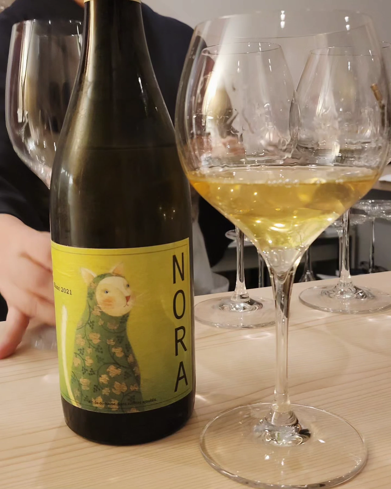 샤르도네 30그루당 하나는 피노그리, 50그루에 하나는 리슬링을 같은 구획에 심고있다. 한쪽에는 피노누와 30그루당 하나는 시라를 섞어심는다. 노라쿠라의 대표상품 샤르도네를 사용한 노라 블랑, 지금까지는 가능한 늦수확을 했지만 최근 3년 무더위가 이어져 2019년 산이 낮고 알콜이 높아져서 이젠 조금 빨리 수확하려 생각한다. 노라쿠라의 와인라벨엔 품종이 써있지 않는 것이 특징인데 선입관없이 와인을 마시기 바래서 이다. 품종만으로 와인맛이 결정되는것이 아니기에.. 사사키부부가 좋아하는 와인생산자는 부르고뉴의 얀드리유, 이본 메트라 그치만 그들은 부르고뉴같은 샤르도네, 피노누와를 목표로 하고 있는게 아니고 떼루와가 다르면 다르게 나타나는게 당연하다고 생각한다. (그러나 내짝궁 쏨은 먹고서 '와 이건 완전 부르고뉴야' 했음)