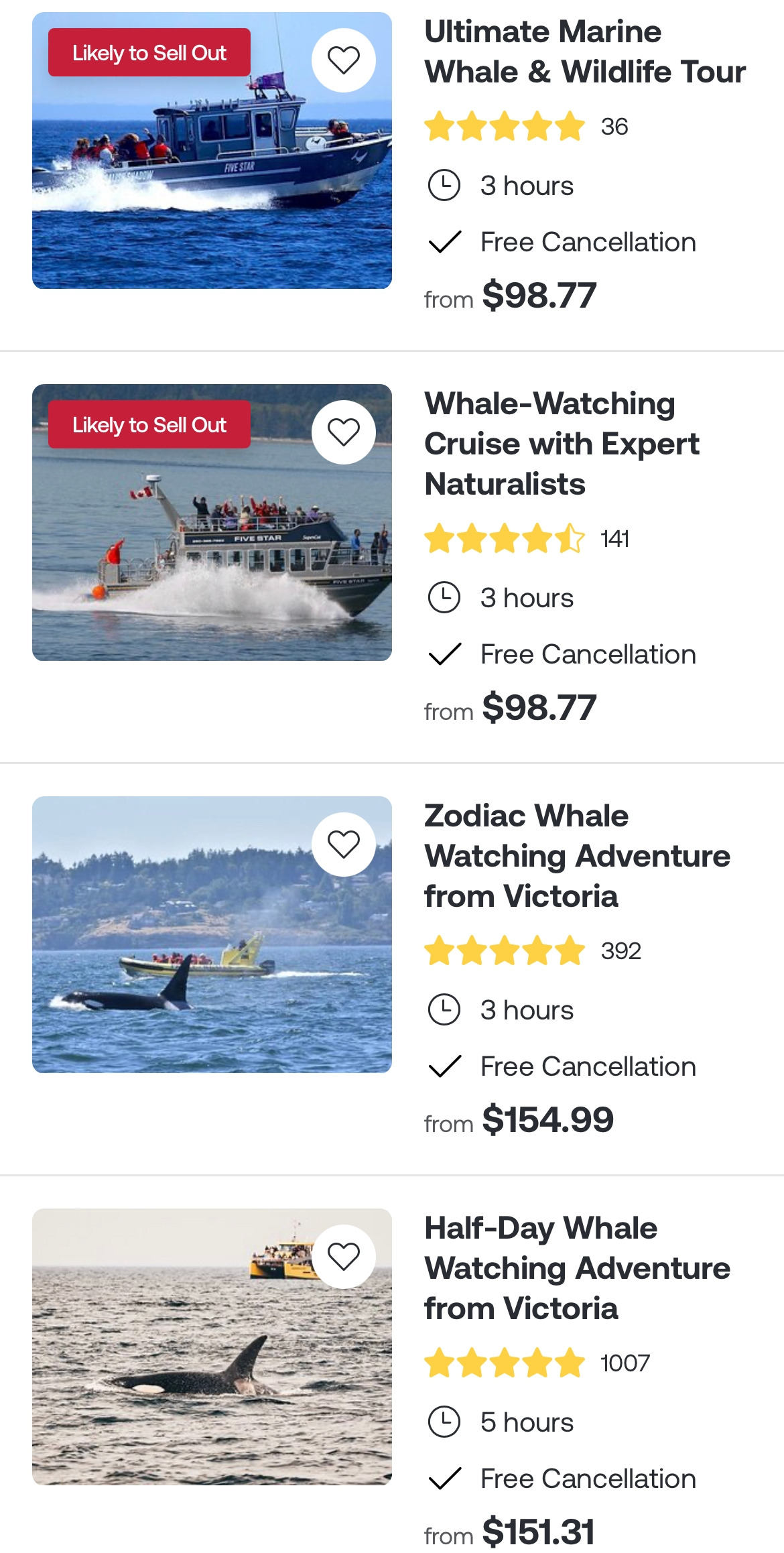 빅토리아 아일랜드의 명소와 먹을거리 등을 찾아보기 시작했다. 다운타운의 주요 명소 몇 개를 제외하고는 whale watching과 hiking 뿐이었다. 고래를 유람선을 타고 보고 경비행기를 타고 보고 보트를 타고 보고 다운타운 근처 선착장에서 보고 옆에 섬 가서 보고 반대 섬 가서 보고… 하이킹도 똑같은 맥락이었다. 중간에 친구랑 시애틀에 놀러 갈 계획도 잡아봤는데 페리 시간대와 숙소 여건이 좋지 않았다. 숙소는 지불 비용이 높아질수록 여건은 나아지지만 면허도 없고 운전도 못 하는 나에게 페리는 필수불가결한 교통수단이었다. 게다가 운전을 못 하는 나에겐 시애틀 뿐 아니라 밴쿠버 아일랜드와 밴쿠버의 관광지를 돌아다니는 것은 거의 불가능해 보였다.