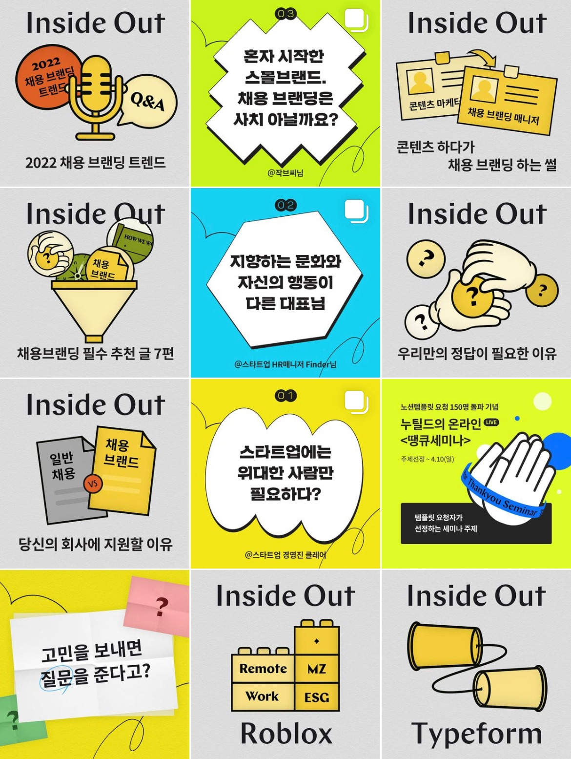 처음 시작할 때부터 의미 있는 실행을 할 수 있었던 이유에는 역시 능력 있는 크루와 함께 했기 때문인데요. 마이크로소프트웨어, 아웃스탠딩, 슬로워크 등에서 기자나 라이터로 일을 해오시던 메이(장혜림님)를 크루로 모셨었거든요. 채용 브랜드 분야를 처음 접하시는대도 불구하고 적극적으로 흡수하신 후 연속적인 결과물까지 빠르게 낼 수 있었습니다. 누틸드팀 모두가 역시 프로는 다르다고 생각했죠!
