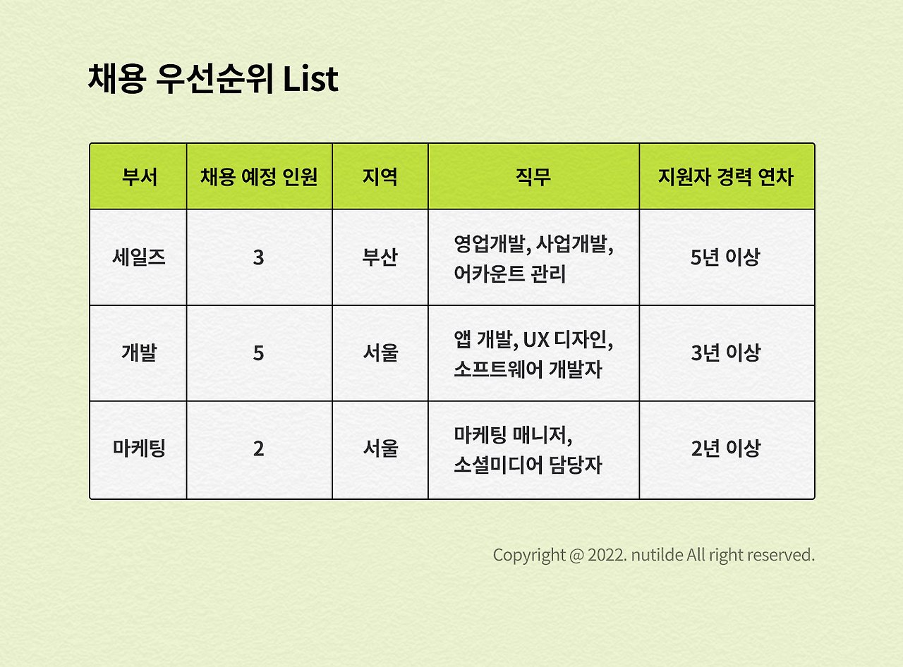 채용을 앞둔 고용주분들라면 직접 표를 만들어서 채워보세요.