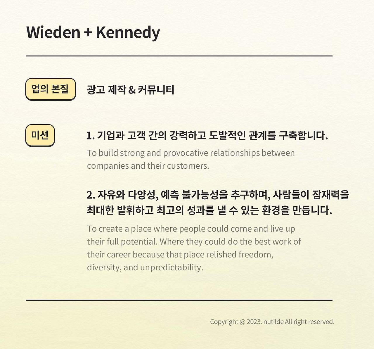고용주 브랜딩 전략을 살펴보기 앞서 <와이든 앤 케네디>가 어떤 조직인지 먼저 살펴볼게요.