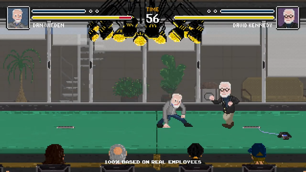 2년 전, 와이든 앤 케네디는 그들을 배경으로 격투 게임을 만들었어요. 창립자인 와이든과 케네디는 물론이고 100명이 넘는 상파엘루 지사 직원들 전부를 게임 캐릭터로 만든거죠.
