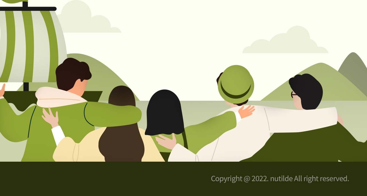 누틸드는 nu(new) + tilde(물결표 ~) 를 합쳐 만든 우리의 이름이다. 끝없는 망망대해와 파란 물결을 상상하고 만든 건 아니었고, 그냥 어떤 의미든 쉽게 붙일 수 있도록 이미 편견이 잡혀있지 않은 게 뭐가 있을까 하다 문장부호부터 뒤지기 시작한 것뿐이다.