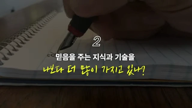 두 번째 질문은 리더의 능력에 대한 것이에요. 자신의 일에 대한 확신과 전문성은 물론이고 나아가 이것이 구성원들에게 신뢰를 줄 수 있어야 하죠.