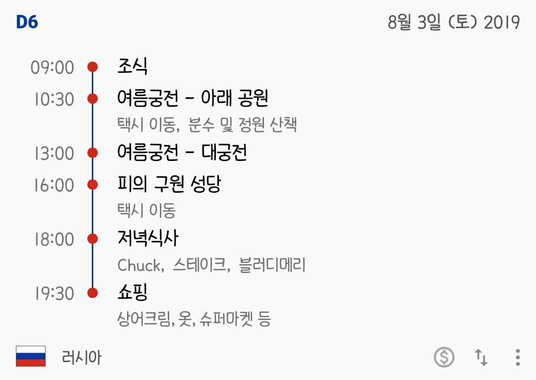 6일 차 경비 : 여름궁전 (1,500루블) + 식사/쇼핑/택시비 등
