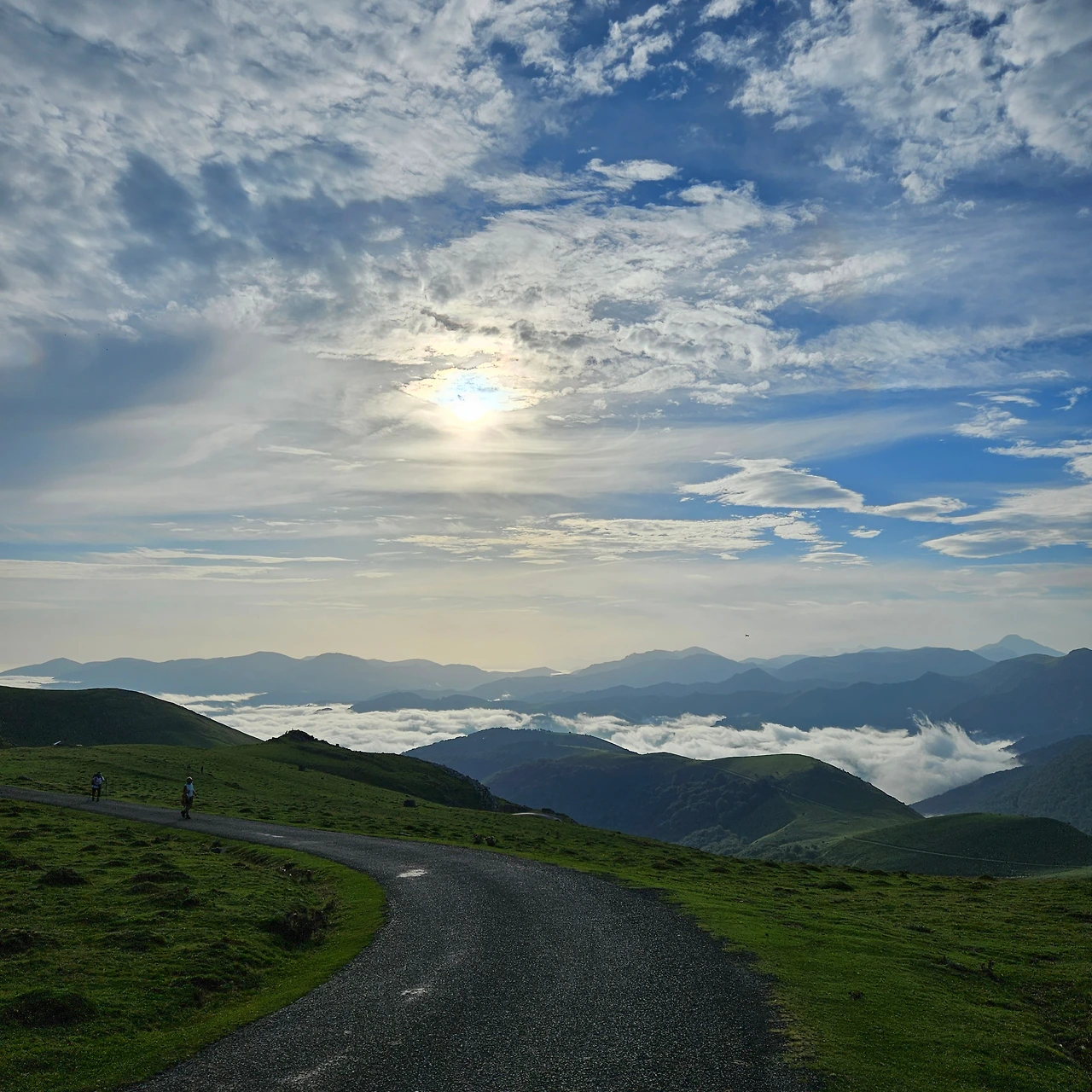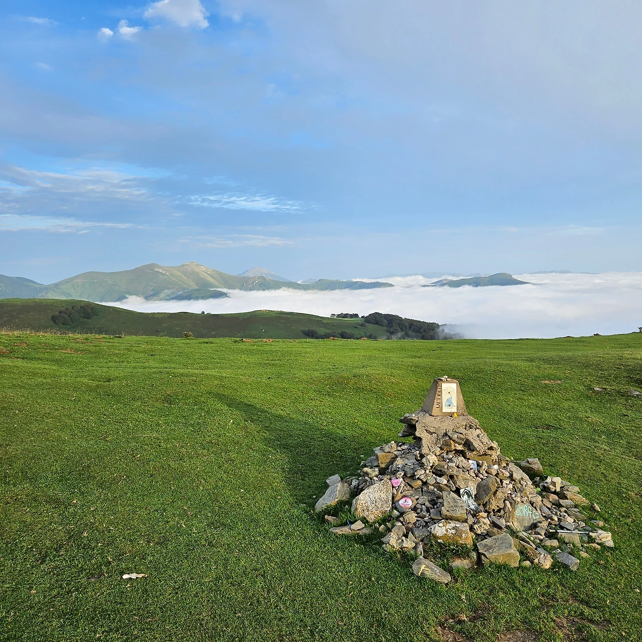 둘째 날의 걸음은 그래도 시작만큼은 나쁘지 않았다. 피레네 산맥을 감싼 아침 안개가 햇볕으로 서서히 걷히는 모습이나, 구름을 향해 점차 나아가는 기분이 사뭇 벅찼다. 활짝 웃는 얼굴로 첫 인증샷을 찍기도 했다.