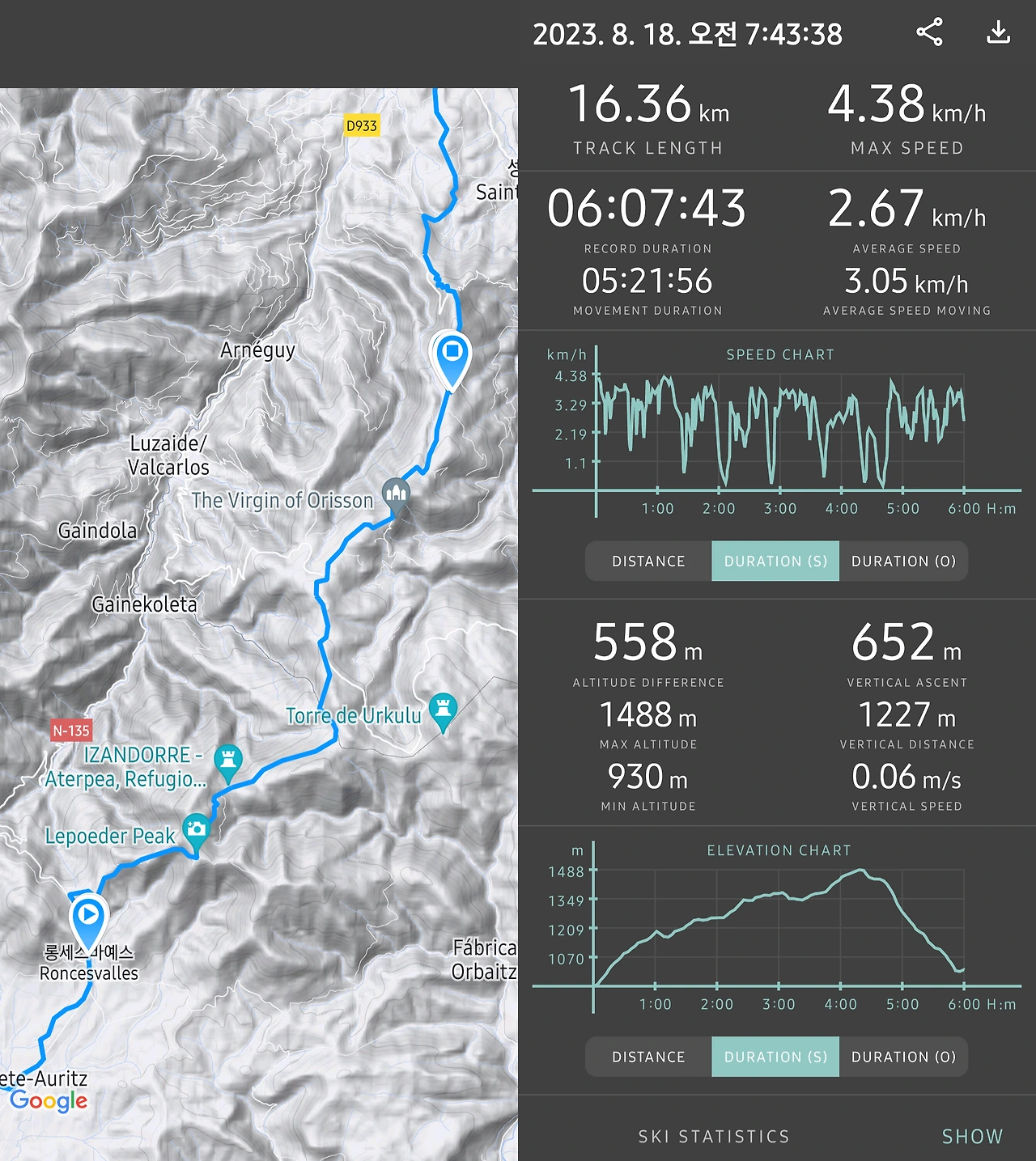 생장부터 롱세스바예스까지. 피레네 산맥을 넘는 대략 25km 길이의 순례길을, 한국인들은 보통 하루 만에 해치운다고 한다. 새벽에 생장에서 출발해 오후 2~3시 전후로 도착하는 일정이란다. 보통 동키 서비스를 이용하는 모양이지만, 그렇지 않은 이들도 두엇 만났다.