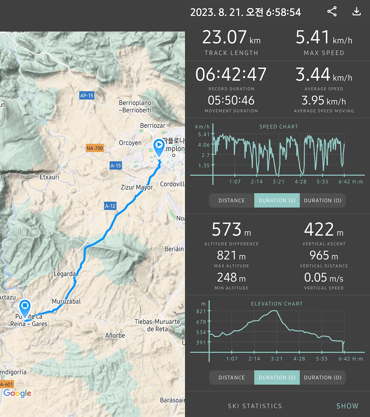 시작. 팜플로나(Pamplona) 종료. 푸엔테 라 레이나(Puente La Reina) 해냄. 6시간 반 / 23.07km