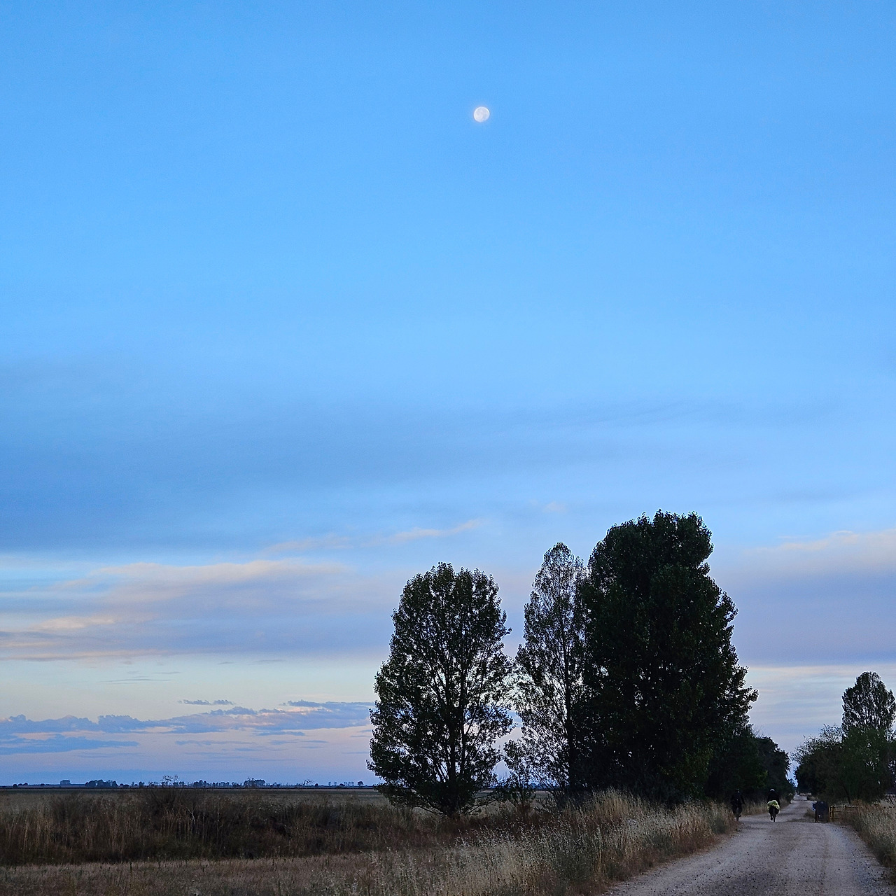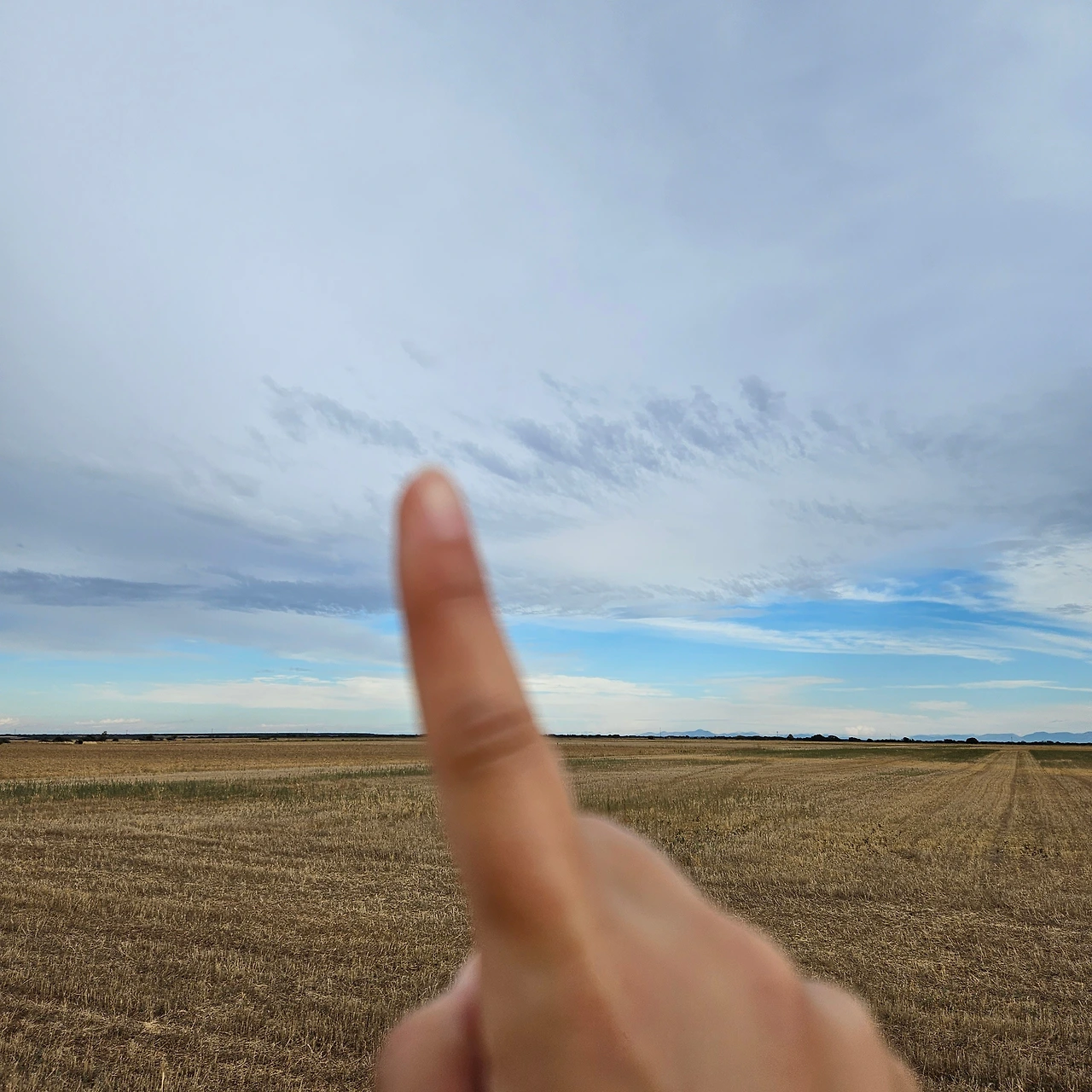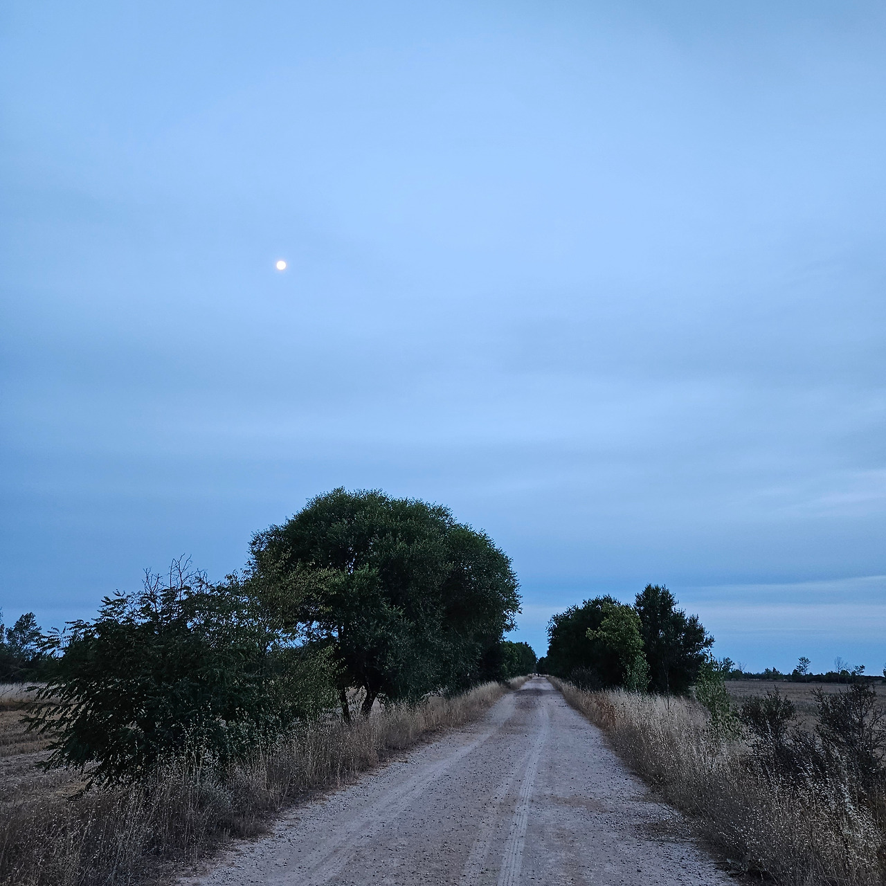 파란 하늘을 배경 삼아 덩그러니 떠있는 새하얀 달. 해가 떴음에도 선연하게 존재감을 뽐내는 창백한 빛깔이 지나치게 아름다워서 현실감이 없다. 굴곡 없이 잔잔하게 이어지는 땅, 바람 따라 끊임없이 흐르고 변화하는 하늘. 그 둘이 맞닿은 저 멀리의 지평선은 그저 아득하다. 이 침착한 고요야말로 까미노의 정체성 그 자체가 아닐까.