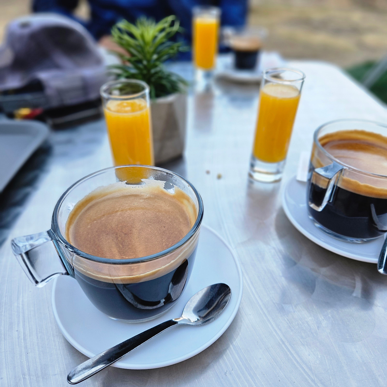 갑작스러울 정도로 우두커니 길 한가운데 서있는 카페 트럭 앞에서, 순례자들은 기꺼이 발을 세운다. 동전을 세어 아메리카노 3잔을 주문하니 샷잔에 채운 주스를 서비스로 내어준다. 진한 커피 향에 마음이 녹진해진다. 이 오아시스를 그냥 지나치는 의지 강한 순례자들에게 "부엔 까미노" 인사를 건네며, 편안하고 달콤한 휴식을 누린다.