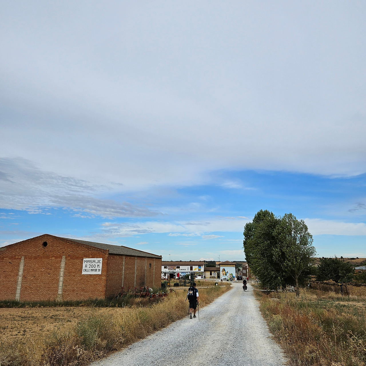 드디어 마을이 보인다. 마을과 마을 사이 17km 내내 이토록 아무것도 없을 수 있다니, 놀라워라. 목적지에 도착한 우리는 커다란 맥주를 한 잔씩 주문해 들이킨다. 전날 카리온에서 함께 시간을 보내고 같이 걸어온 아부지의 친구분은 얼음 넣은 콜라 한 잔을 시원하게 마신 뒤 금세 자리를 털고 일어난다. 순례자의 속도는 저마다 다르기에, 다음을 기약하며 작별을 고한다. 아쉽게도 산티아고에 도달하는 그날까지, 재회는 없었다.