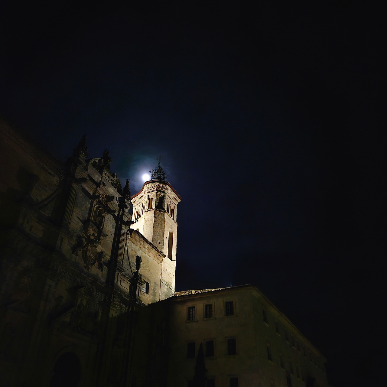첨탑 끝에 아슬하게 걸린 밝은 달
