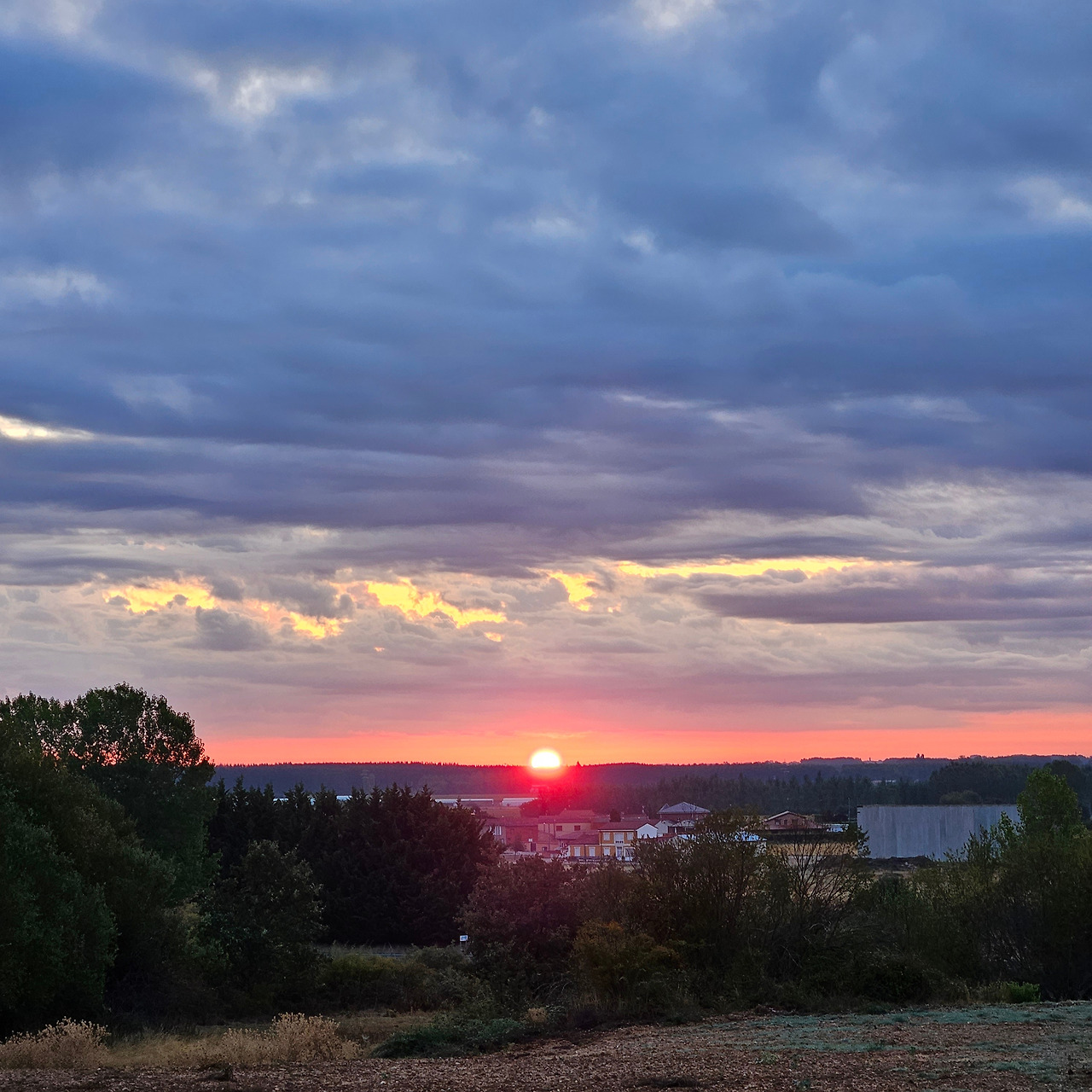 여전히 비가 쏟아지는 새벽, 날씨 어플을 켜본다. 한 시간 정도 후에 비가 그친다는 예보를 믿어보기로 하고, 알베르게 바로 앞 카페로 향한다. 이른 아침에 여는 가게가 많지 않다 보니 순례자들로 북적인다. 토르띠아와 커피, 오렌지 주스의 익숙한 아침을 먹는다. 오후를 위해 작은 초콜릿 두 봉지도 챙겨든다. 우비로 감당할 수 있을 만큼 잦아든 빗방울에, 거의 마지막으로 알베르게를 나선다. 어스름한 새벽의 빛깔 속으로.